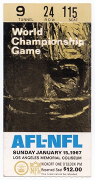 Who could have believed that decades later the Super Bowl would be responsible for multi-million dollar television advertisements and multi-thousand dollar scalped tickets? This one only cost $12 back in the day. You'll have to pay a bit more than that for it now though. EX.