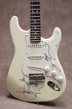 We have an American Fender Stratocaster that has been hand signed by Pete Townshend and John Entwhistle who added his trademark Boris The Spider illustration.