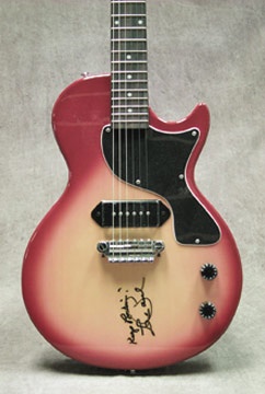 Here's a Gibson Epiphone Sunburst guitar signed by legendary guitarist Les Paul.