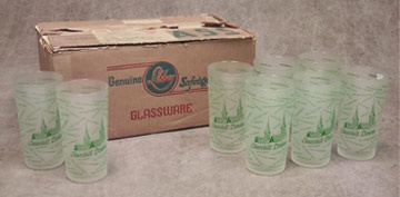Mix up the Mint Juleps and invite over seven of your best friends, because they're going to flip when they see this. Direct from Churchill Downs come this complete Mint set of eight glasses listing all Derby winners up until '54. They're still in the original mailing box with Churchill Downs return address and May 1954 postmark.