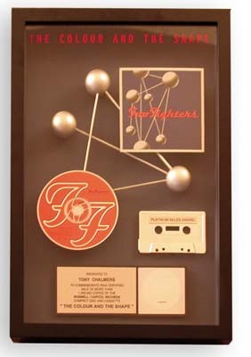 Dave Grohl bounces back after the unfortunate end to Nirvana. This attractive award was presented to a Roswell/Capitol Records executive to commemorate the sale of more than a million copies of "The Colour and the Shape."
