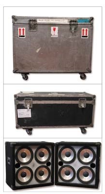 These actual road cases traveled with KISS and held their music and stage equipment. All have wheels and most are stenciled with the KISS logo and KISS inventory bar code. 31x26x58" (2), 52x28x39", 41 x 36x34" and 47x36x59". Estimate $750-$1,500.