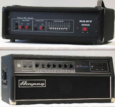 This KISS logo stenciled Dart 400B original Gene Simmon's bass amp from 1997 was an early direction of Gene's bass amp. Also included is a KISS SVT bass head. (7x21x14"). Estimate $750-$1,000.