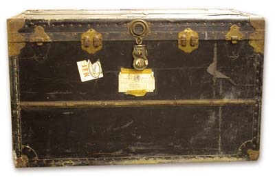 Steamer trunk dates from the days of Joe DiMaggio and the Bronx Bombers. Has the return address of the Yankees legendary PR Director Bob Fishel and shows it was used by many through the years. Cedar lining and all-original metal fittings, it has lots of character. From the orig-inal Yankee Stadium demolition company this was market-ed by J. Peterman who we obtained this from directly. Fair but solid condition. 23x24x40".