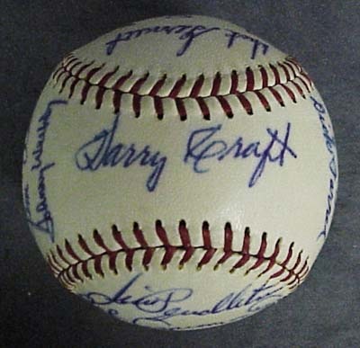 The first year of this baseball foot-note, making this an exceptionally rare ball (especially in such NRMT condition). Nineteen blue ink sig's on an ONL (Giles) ball has the single notable Aspromonte. Original box included. From the collection of a minor league baseball executive.