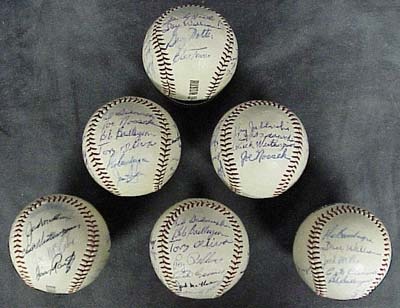 Half a dozen minor league team signed baseballs average over twenty NRMT signatures each. Any future stars here? We'll let you find out. From the collection of a minor league baseball executive.
