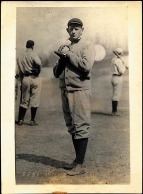 He's best remembered for a wild pitch that cost the New York Highlanders the pennant, but his other pitches earned him a Hall of Fame plaque. Great early wire photo is EX.