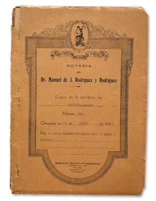 Eighteen-page contract in which Bobby Maduro and Emilio DeArmas get the right to have the Cienfuegos team. They agree to buy it for installments of $10,000 a year. Maduro was the famed owner and contractor of the El Cerro, the most famous Latin American stadium still standing today. This is the first team that he bought. Notarized and registered legal document, with lawyers' signatures. Condition is terrific.