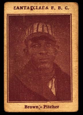 Brown was a left-handed pitcher in the Negro Leagues from 1918- 25. He was generally considered to be the best lefthander in the Negro Leagues during that time. His career came to a sudden halt in 1925 when, sought in connec-tion with a New York homicide, he disappeared. This grades EX and is slightly off-centered left to right.