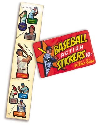 This pack retailed for 10 cents back in 1968! The wrapper is EX-MT; there are no holes or tears. Also included are the contents of one pack, a strip of three vertical pan-els with a total of seven stickers on it. This is how these were originally issued. The top panel includes Rick Monday, Willie McCovey, and Steve Hargan. The middle panel has a great shot of Mickey Mantle in a swinging pose. The bot-tom panel contains Rod Carew, Tony Gonzalez, and Billy Williams. The entire vertical panel of three is completely intact. These stickers are scarce.