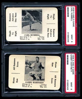 This is a great looking lot of, nostalgic, black and white game cards from S and S. There are two PSA 9's: Carl Hubbell and Gabby Hartnett, both of whom are members of the hall of fame. There are sixteen PSA 8's: Appling, Grimm, Vaughn, Cuyler, Cavarretta, V. Kennedy, F. Higgins, F. Young, Warneke, Vosmik, Haas, English, R. Collins, O'Dea, Radcliff, and French.