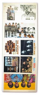 This 28x72" sheet offers the earliest stages of production of the covers of the Fab Four's finest releases. Acquired directly from the Queens Litho design house. Albums represented include Help!, Rubber Soul, Yellow Submarine and Sgt. Pepper's. This sheet even has the color key bar, with Sgt. Pepper's poster insert. EX+ condi-tion. This would look just amazing framed. Take your Beatles collection to the next level, and cover some serious wall space with this outrageous piece.