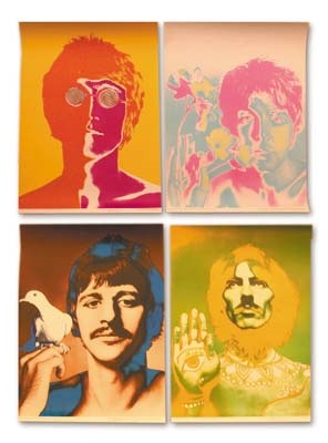Four posters, one for each Beatle comprise the German version of The Beatles Avedon poster set, each measuring 18.75x27". First time we've seen a German set. All four posters are NRMT.