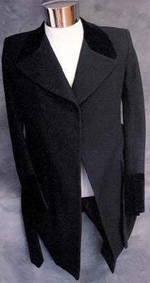 This Edwardian-style long draping belt-ed cashmere in blue with velvet collar and pockets was worn by the great Ringo Starr. "Granny Takes a Trip" reads on the label of the inside pocket and pictures a psylocibin mushroom (What A Trip!). Comes with photo doc-umentation of him wearing it (matches up perfectly). It was obtained from his girlfriend Nancy Andrews who lived with him from 1972-80 and comes with her signed letter of authenticity.