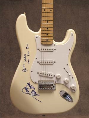 This Fender Squire Stratocaster electric guitar is autographed by Brian Wilson, who also inscribed "Fun, Fun, Fun." It is also signed very cleanly by Mike Love in blue pen. NRMT.