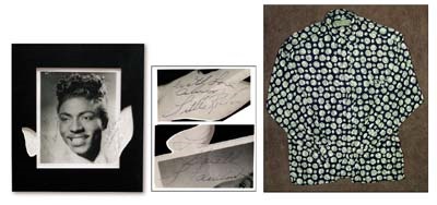 An Italian made button down polka dot shirt is a befitting piece of satirical campiness perfectly suited to the outra-geous Mr. Penniman! Along with the shirt is a black &white 50's head-shot autographed "To Gareth Pawlowski with Love Little Richard."