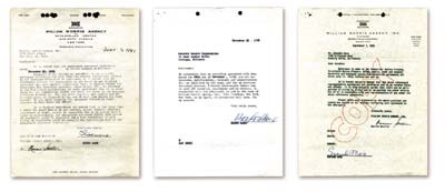 From the 1940's to the 1960's all three contracts between the William Morris Agency and one of the Marx brothers are signed in perfect ink. Chico's and Harpo's contracts are on standard paper stock, while Groucho's is onion skin. All pages in strong condition and suitable for framing.
