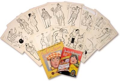 Great pen and ink renderings of the portly star of The Honeymooners were com-missioned for a pair of coloring books, which are also included in this fine lot. All artwork is NRMT, and many have typed captions affixed with glue at bottom. Books themselves are EX-MT and NRMT respec-tively. And we suggest that you resist the temptation to go hunting for that box of crayons, okay?
