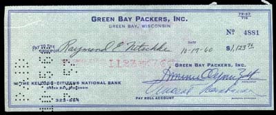 Lot # 1431: Raymond Nitschke Endorsed Payroll Check