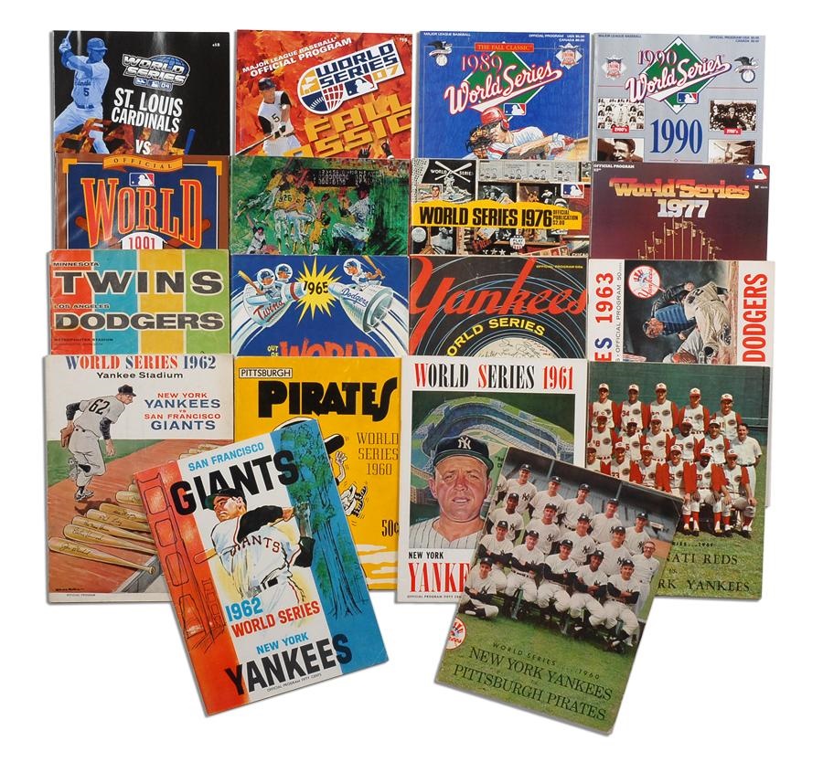 Enormous collection of World Series programs dating from 1960 through 2007. 50 programs in all, and each of them is in truly nice condition. No matter which baseball team you follow, if they've been in the World Series during the past five decades they're represented here. EX-MT or better condition.