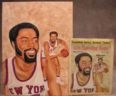 Acrylic on artist's board was commissioned by the famed publication for the cover of the February 15, 1975 cover featuring the "Nimble Knick." Art is NRMT, as is the copy of the cover in print. 18x24".