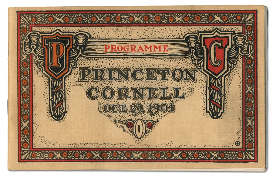 This "programme" from the Princeton-Cornell contest from Oct. 29, 1904 comes from the turn of the 20th Century, when college football was king. This piece of memorabilia, which is over 100 years old and in EX-MT condition, contains pictures, advertisements, starting lineups for both Cornell and Princeton and detailed explanation of the rules of football during that time period.