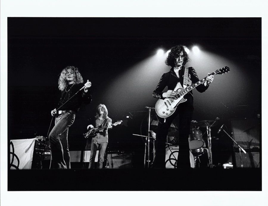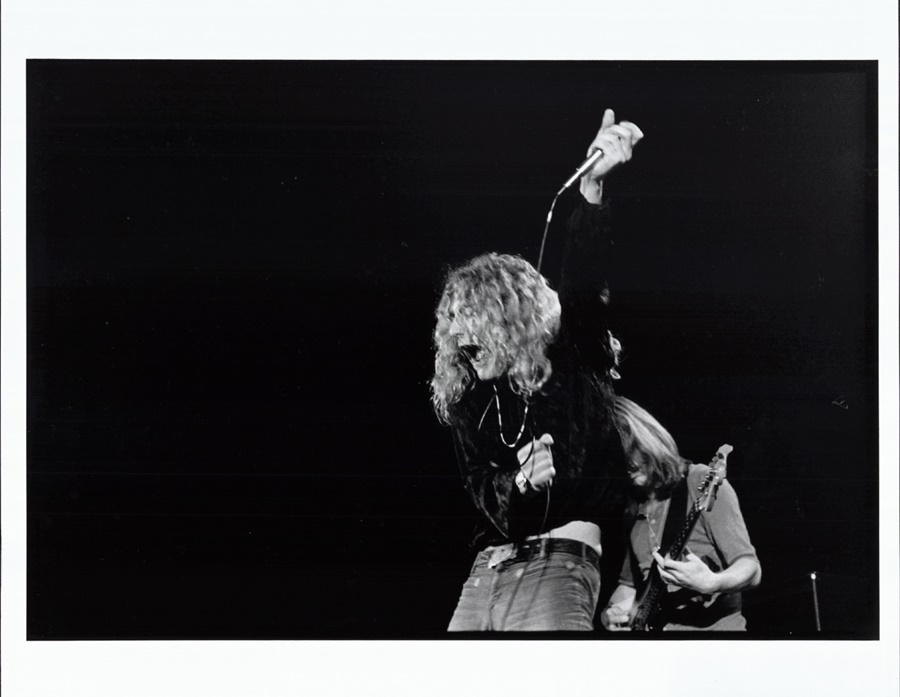Legendary rock band Led Zeppelin performed at the Los Angeles Forum on June 25, 1972. These photos were taken by Jim Marshall (his stamps are on the versos of each photo). These 8x10" pictures were printed perhaps 10 years after they were taken. NRMT. The photos are primarily of Zeppelin front men Robert Plant and Jimmy Page.