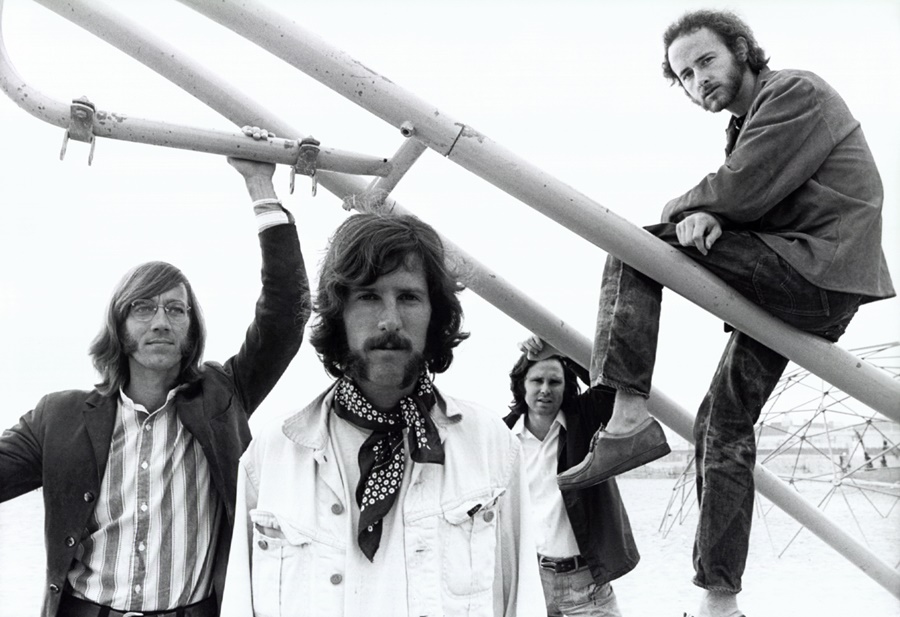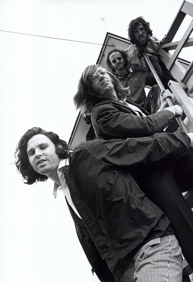 The Doors were one of the most controversial and popular acts of the rock and roll era. This package includes two 8x10" black and white shots of band members Jim Morrison, Ray Manzarek, Robby Krieger, and John Densmore. This pair of photos was taken by Henry Diltz, whose stamp is located on the back of each photo. EX+.