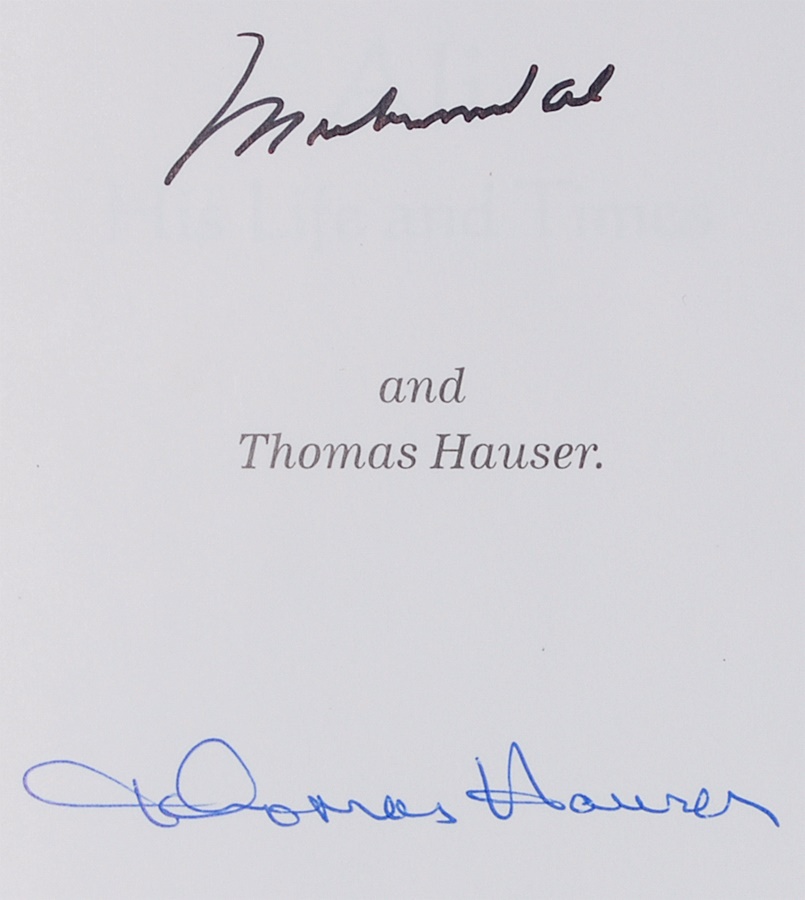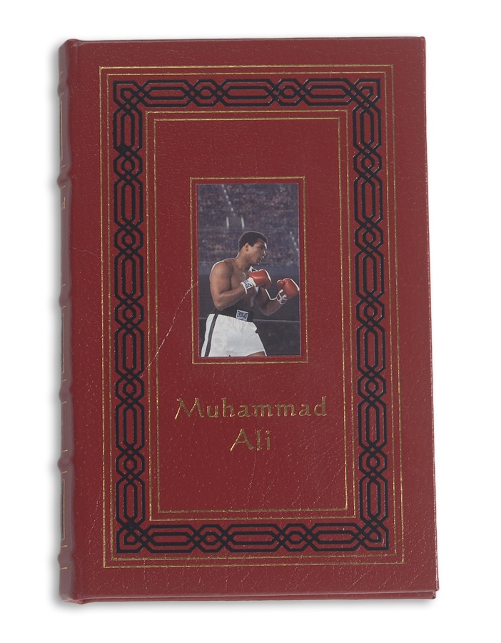 This is the leather bound edition of MUHAMMAD ALI: HIS LIFE & TIMES by Thomas Hauser. This publisher's edition is boldly signed on the inside special edition page by both Muhammad Ali and Thomas Hauser. 543 pages complete with gold embossed pages inside a beautiful red leather cover picturing Muhammad Ali. Copyright 1991. This edition comes with a Letter Of Authenticity from the author Thomas Hauser and was part of his own collection. In very fine condition.