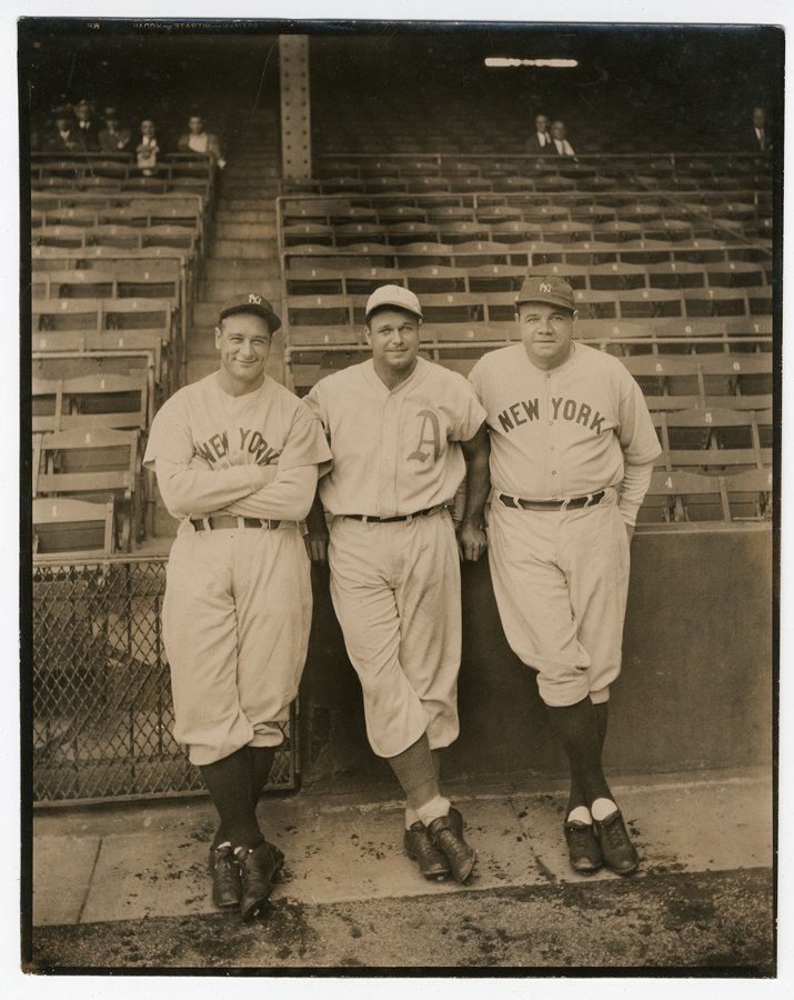 What a beautiful photo (beautiful in the most manly way possible) of three great baseball players: Lou Gehrig, Jimmie Foxx, and Babe Ruth, posing together for the camera. The photo (8x10") itself is an original image, and in EX condition. The quality is just crystal clear, and with all three players' legs crossed at the ankles and little smiles, they look like kids, only taller. It was taken at Shibe Park in Philadelphia, the "City of Brotherly Love".
