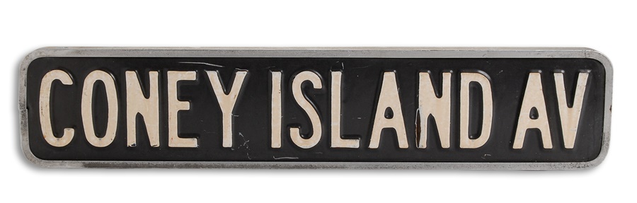 This original Brooklyn, N.Y. street sign comes from Coney Island's heyday as one of the most popular resorts in the metro-N.Y. area. It is two-sided and bound into one aluminum frame. It could easily be opened to make two single-sided street signs. It is approximately 30x6" and in excellent condition with some very minor weathering.