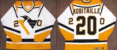 Lot # 1611: 1994-95 Luc Robitaille Pittsburgh Penguins Game Worn Jersey