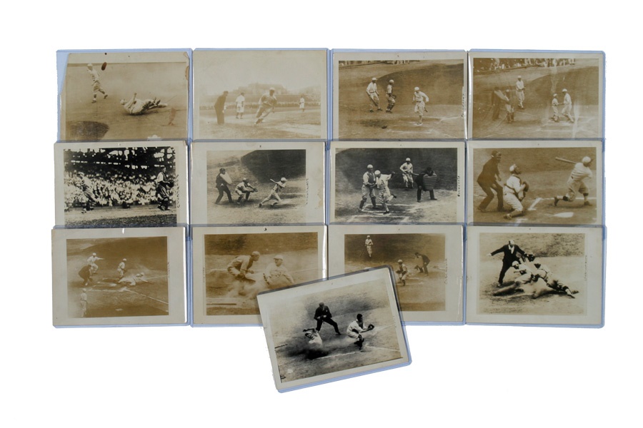 These 13 spectacular Bell photos are of the classic World Series of 1930 and feature some great plate confrontations, including Pepper Martin, Mickey Cochrane and Al Simmons. All in all some great shots of the Philadelphia Athletics and the St. Louis Cardinals. The collection of 5x7" photos is VG-EX overall.