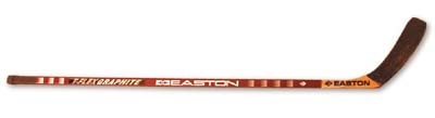 Recent model Easton T-Flex Graphite used by goal-rilla Joe Sakic with the Avs. Wood Easton blade stamped "Sakic" with black tape on the knob and blade.