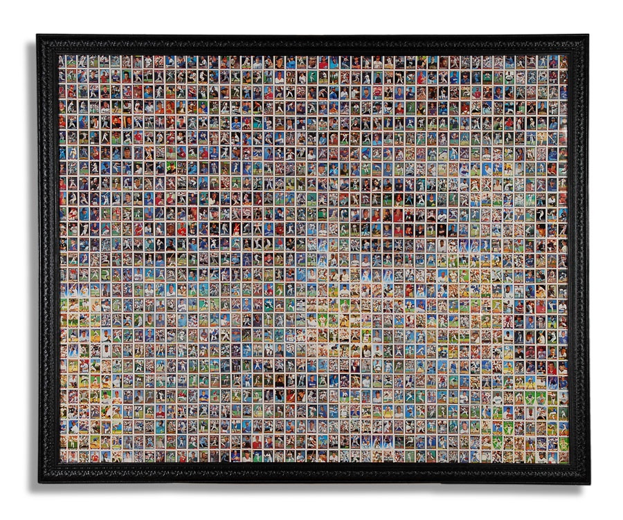 One of the most unusual and outstanding pieces of original artwork you will see, this amazing framed 40x49" display piece is made up of 1,268 Topps Micro baseball cards (1x1.375" each) set in 47 columns by 27 rows. From a few feet away, as the individual cards become blurred, you can see a near perfect portrait of Babe Ruth! This is a limited edition, number 4/166, that has been signed and numbered by the artist Rich Cronin. NRMT.
