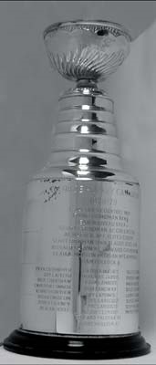 By capturing their fourth Cup in as many years, the Montreal Canadiens of the late 1970's ensured that they would forever be regarded as a hockey dynasty. The players and management of the 1978-79 Championship team were forced to make room in their trophy cases for yet another of these silver plate replicas of Lord Stanley's Cup. Thirty-nine inscribed names form two columns down the front of this towering trophy. Green felt covers the bottom of the black wood base. In excellent condition. Includes a Letter of Authenticity signed by Montreal Canadiens trainer Eddy Palchak.