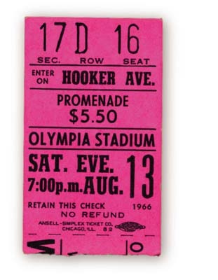 A stub from the evening concert in Detroit where the group was seen by 16,800. EX.