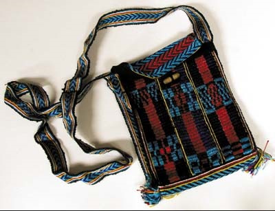 A vibrant woven back with shoulder strap. This was a gift from Janis to Miriam.