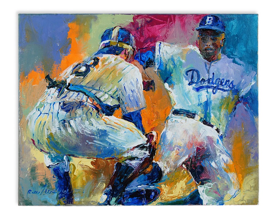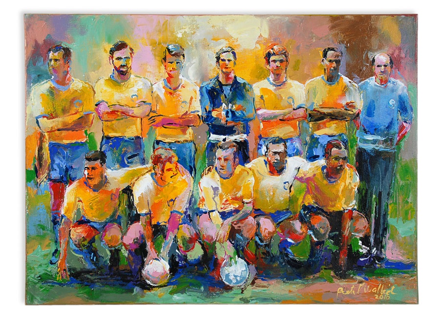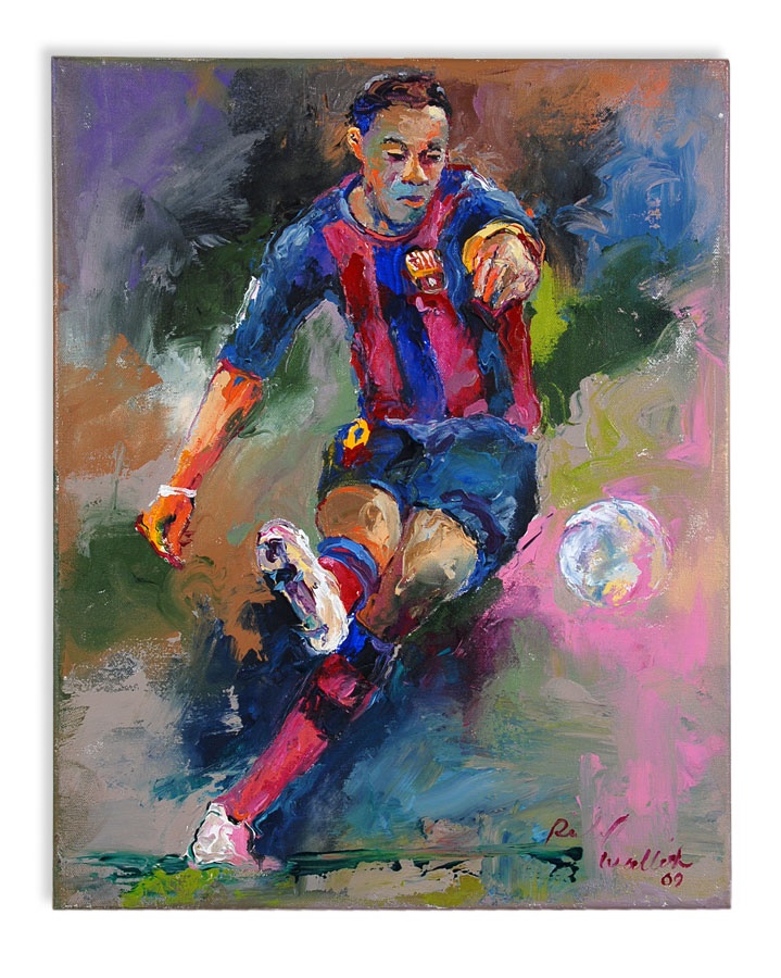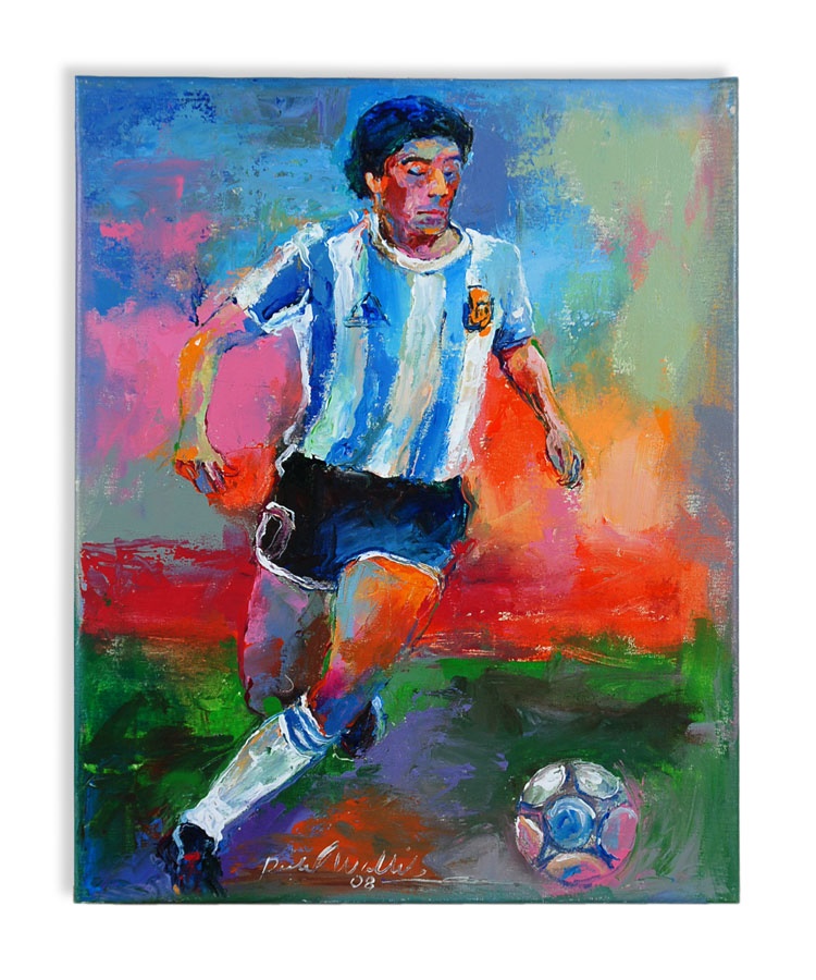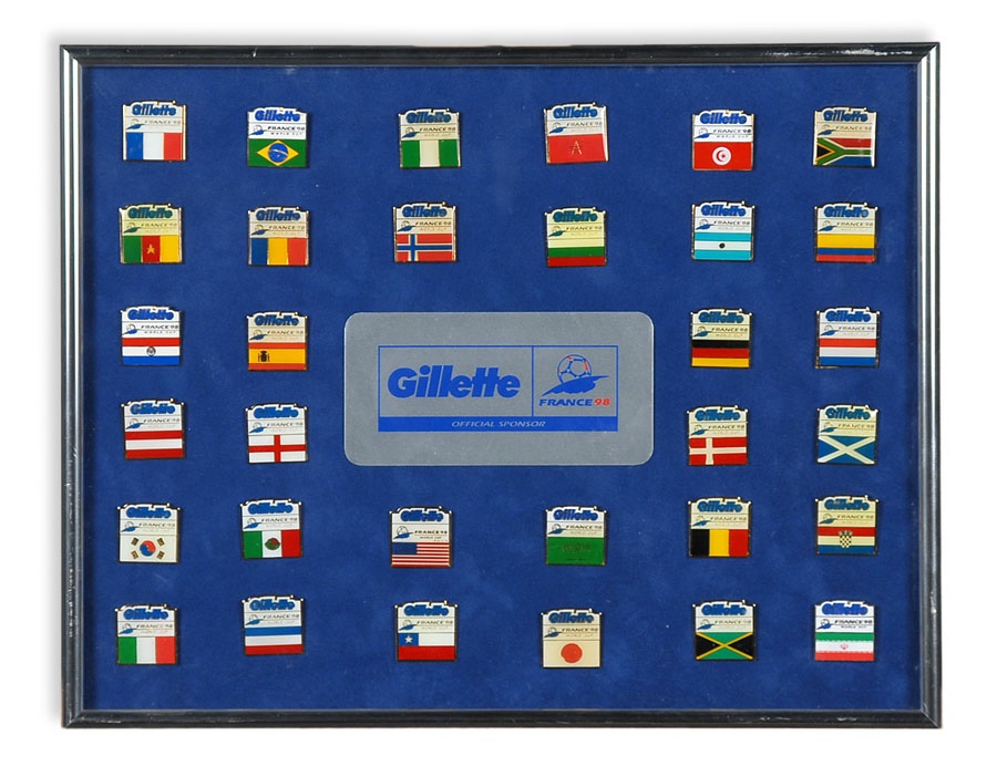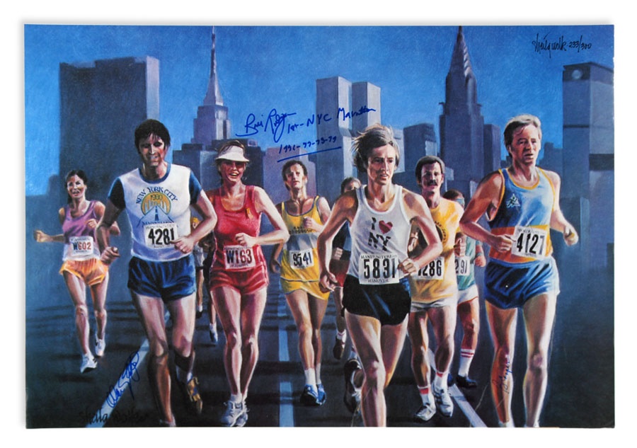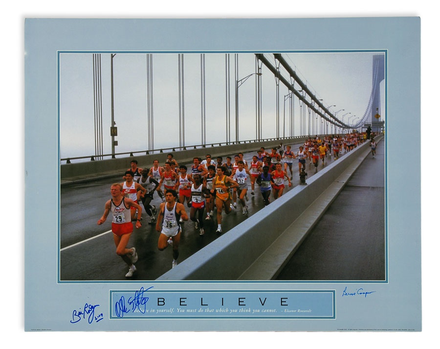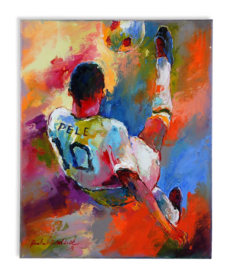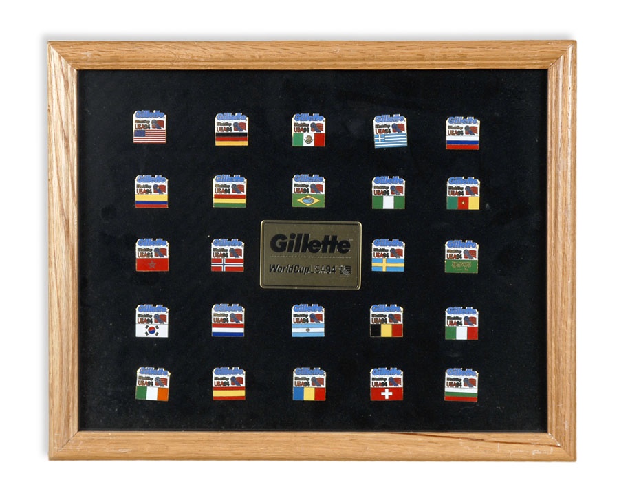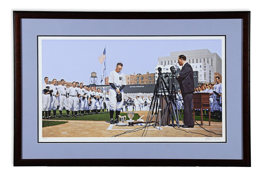 A truly eclectic mix of sports art and memorabilia. Includes: Tampa Bay Lightning Inaugural Season programs, complete sets of commemorative 1994 and 1998 World Cup pins, three framed Vanity Fair "Men of the Day" illustrations including Frank Stanley Jackson, Michael Rimington, and Walter Goodall George, a Perez-Steele card of the Waner Bros., two New York Cosmos autographed photos from Werner Roth and Santiago Formoso, numerous bodybuilding programs, an Ali/Frazier III program, a framed photo of a young Kareem Abdul-Jabbar playing for UCLA, seven Richard Wallich impressionist sports paintings, 17 original World Cup 2010 posters, and over a dozen pieces of framed sports art, including a Pele signed print. Average condition is EX.