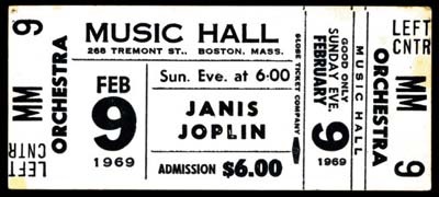 Wouldn't it have been groovy to see Janis in concert for only $6! Well, the next best thing is this unused concert ticket from her 1969 performance in Boston. NRMT. (From another vendor.)