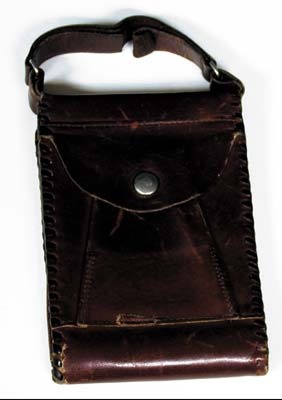 This smooth worn leather wallet mini purse has laced sides. The wallet opens up to a billfold. Worn but overall in excellent condition.