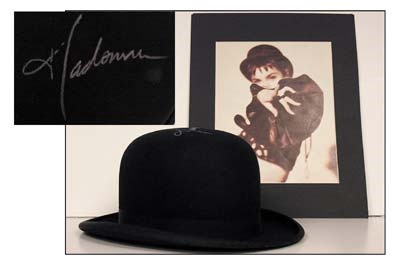 A spiffy classic bowler used by Ms. Ciccone in the photo session for Andy Warhol's Interview magazine cover in 1985.
