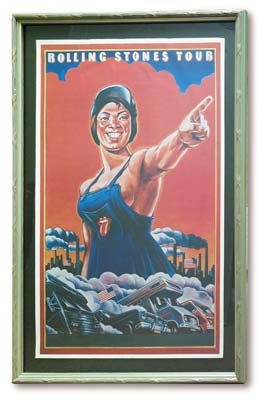 One of the more sought after Stones tour posters is this one depicting a female factory worker. Beautifully framed. NRMT.