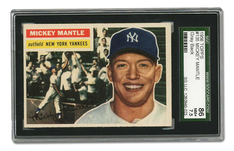 1956 was a banner year for Mickey Mantle and the New York Yankees. This card, issued in the year of his Triple Crown performance, is a fitting memento. Graded by SGC as NM+ 7.5 due to centering which is just a bit too far to left for an "8." Otherwise this is a splendid example with outstanding image quality and snow white borders.