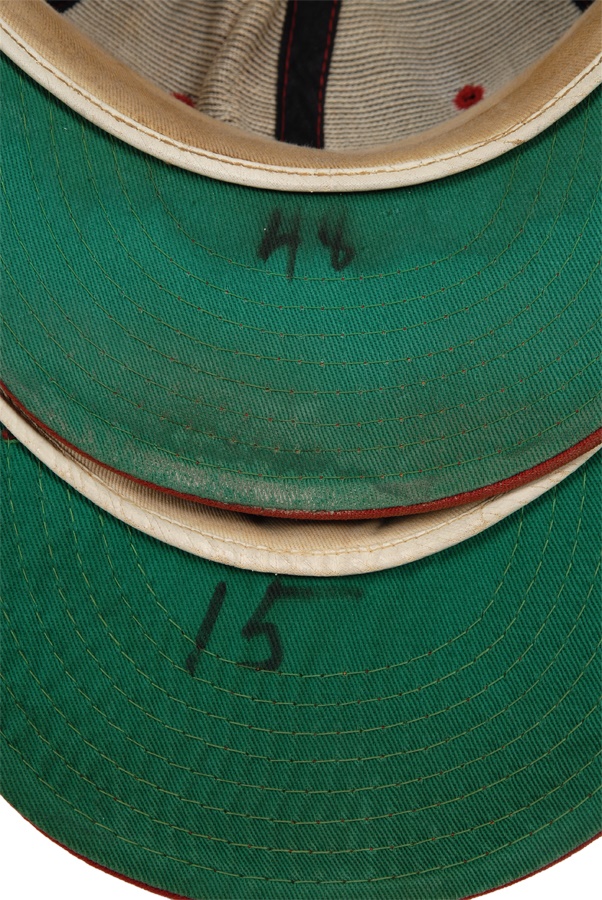 What Phillies fan wouldn't want to own this impressive collection of nine game-worn and game-model caps covering a half-century of Philadelphia baseball? The best of the lot is a 1950s Wilson cap that shows use but has no number. There is a 1960s Wilson with "48" under the brim as it was worn by coach Andy Seminick. There is also a circa-1972 Wilson with "15" under the brim. In addition, there is a Pillbox-style New Era model and circa-1985 New Era. The collection rounds out with four styles from the 1980s and 1990s, including a replica by Devon.