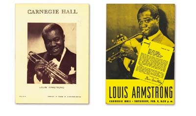 America's ambassador to the world, Satchmo made his concert debut as a band leader at this February 8th Carnegie Hall concert. NRMT two-sided handbill and program mark this important event.
