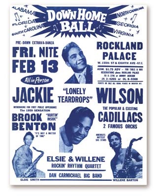 A "Down Home Ball" featuring Jackie "Lonely Teardrops" Wilson, Brook Benton, The Cadillacs, and others appearing on February 13 at Rockland Palace in Harlem, New York. NRMT.