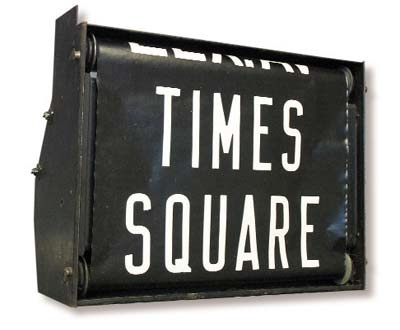 Handsome, cast iron subway sign with sturdy crank handle on the back, which changes to the next stop. Includes major stops from the land locked boroughs: Brooklyn Bridge, Times Square, Flatbush Ave., 59th Street and more. EX-MT condition. ALL ABOARD!! 18 x 22 x 11".