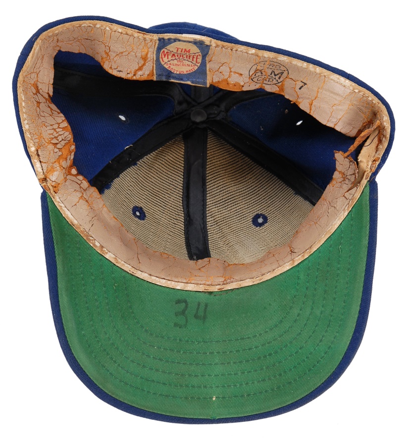 Six game-model hats from various eras of Mets history make up this amazin' lot. The oldest is an early 1960s McAuliffe with "34" written under the brim (Dave Hillman and Jimmy Piersall wore that number in the early days of the franchise). The rarest is a pillbox style by New Era that was used during a handful of games in 1976. There's an early 1980s New Era and three different 1990s models, all of which are unused.
