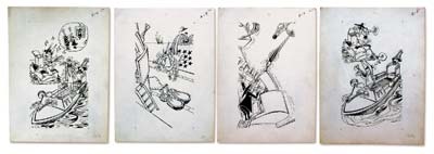 Those evil insect-like masters of espionage have been a fixture of the famed humor magazine since its inception, but it's all but impossible to find the originals (this art will self-destruct in five seconds). Each 11x15 pen and ink work captures another bat-tle in the unending war between the white spy and the black spy. These appeared int the paperback book entitled simply, Spy vs. Spy. All are NRMT.